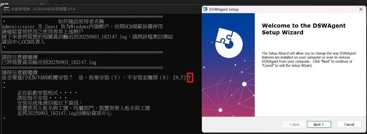4.請按Y並執行DSWAgent.msi,如果看到「Windows已保護您的電腦」,請點「其他資訊」